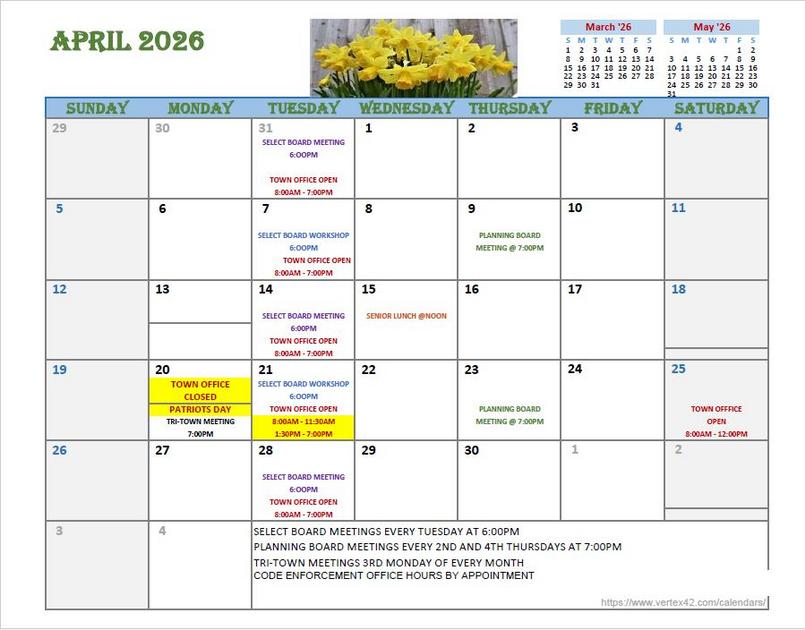 TUESDAY, APRIL 7TH - SELECTMEN WORKSHOP @ 6:00PM