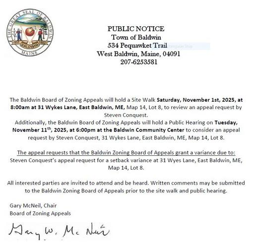 Baldwin, along with, Porter, Parsonsfield, Cornish and Hiram, now belong to the AARP Network of Age-Friendly States andCommunities.